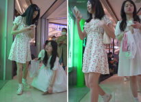 守了一下午終於來了一個短髮長裙美媚