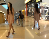 商場一路跟蹤抄底粉裙美女竟然光著屁屁來逛街
