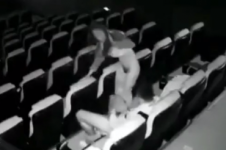 小情侶電影院啪啪 都沒人太好了 可惜還是被攝影機錄到
