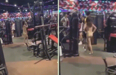健身房來了個不穿衣服的妹子 不知為何跟著一個男子屁股後面鬧 這下有幾個人還有心思健身