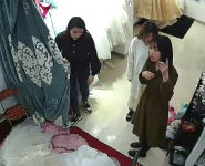 (婚紗店試衣間偷拍新娘伴娘試婚紗)4閨蜜發現指著攝像頭結果還是被拍了